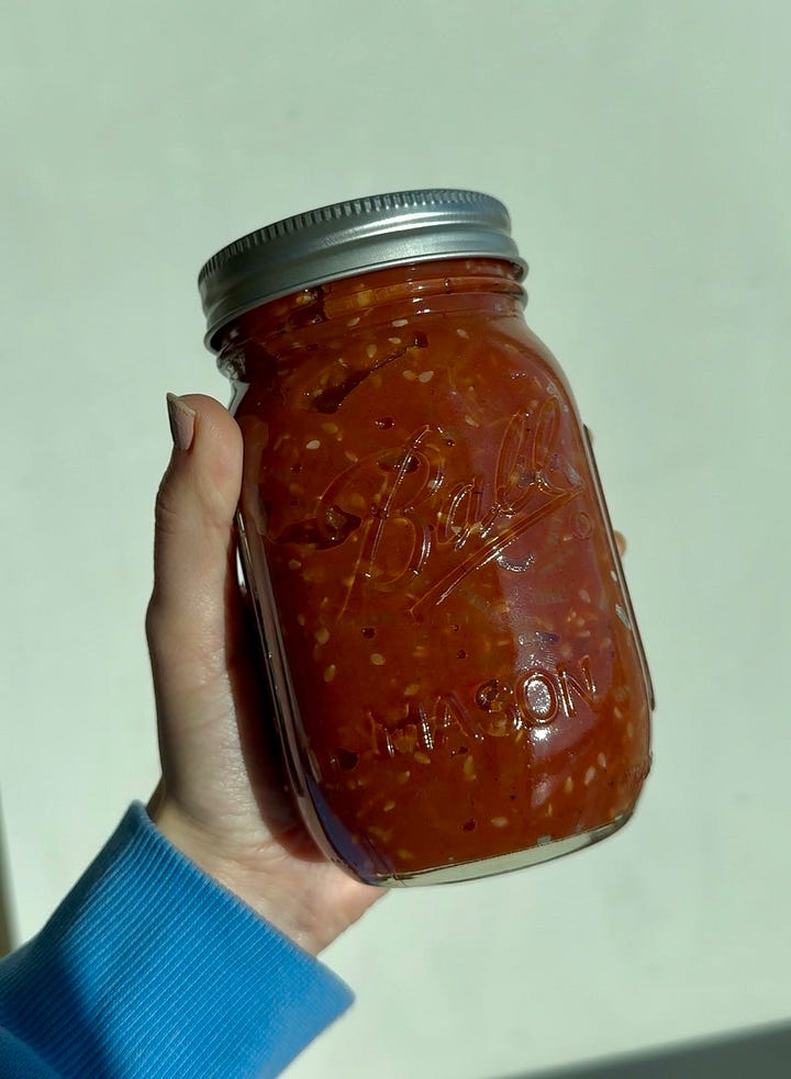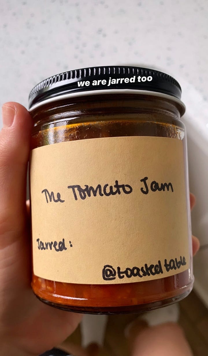 For those of you who don’t know already, I started a toothpaste company in August after working on it for five years. But before my obsession with chic toothpaste began, I was obsessed with this tomato jam. It was peak covid era, and I was furloughed from my corporate job, so I was doing nothing but cooking (like everyone else). After developing a recipe for a kinda-savory, kinda-sweet, very cinnamon-y tomato jam, I felt like I had something on my hands. Everyone loved it — and by everyone, I mean my three family members living in the house with me — and I would do nothing but cook and jar this tomato jam. Our house constantly smelled like sweet cinnamon, and our pantry was filled with jars. So why not start selling them?