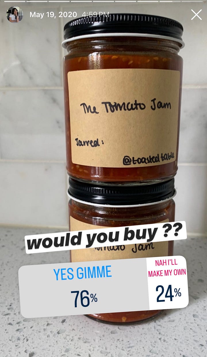 Thus began my tomato jam business. I registered an LLC with New Jersey, started working on branding, and of course, perfecting the recipe. But, there were a few catches. For starters, NJ requires all sellable food products to be made in a commercial kitchen, and the kitchens near me were far too expensive than I could manage. And second, because I wanted to use high-quality products, I needed to sell each jar for around $20, which felt crazy. After logistical constraints, my passion project wore out, and instead I was left with 40 jars of tomato jam that I couldn’t sell. I think there are a few hidden in the same pantry somewhere.
